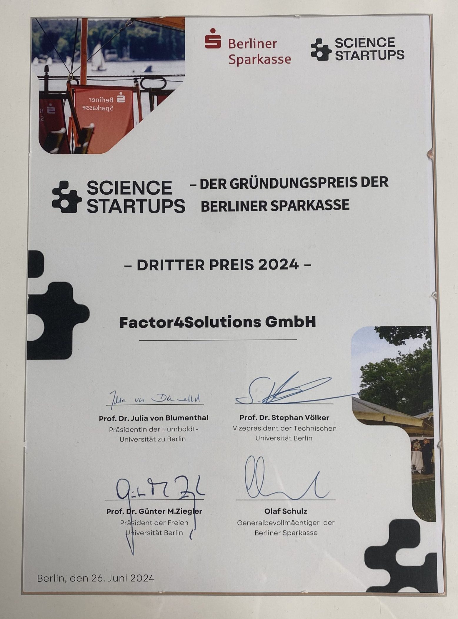 Science & Startups Gründungspreis of Berliner Sparkasse, June 2024